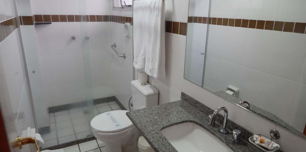 Ar condicionado, televisor LCD, mesa de trabalho, cofre individual, internet WiFi grátis e frigobar.
